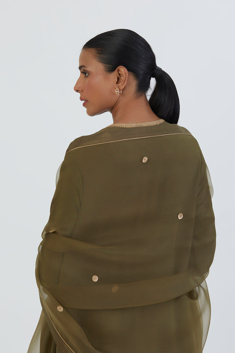 Almas Dupatta-Mehendi Green