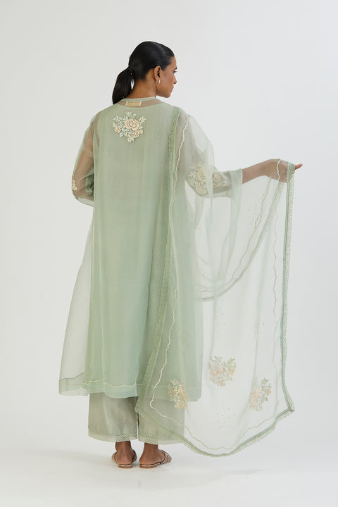 This dupatta is crafted in sheer organza. It features all-over delicate resham embroidered floral motifs.